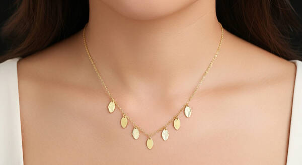 كولية ذهب اوراق الشجر عيار 18 قيراط قطعة فريدة تضيف لمسة فاخمة علي اطلالتك الفاخرة